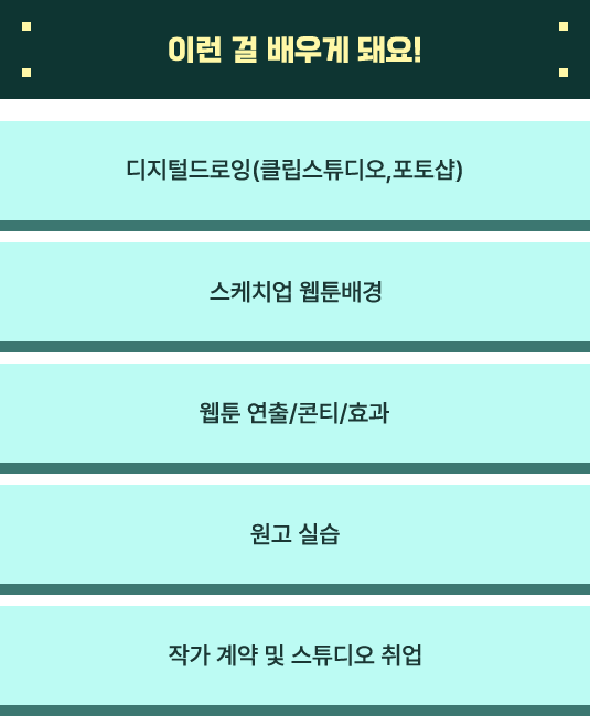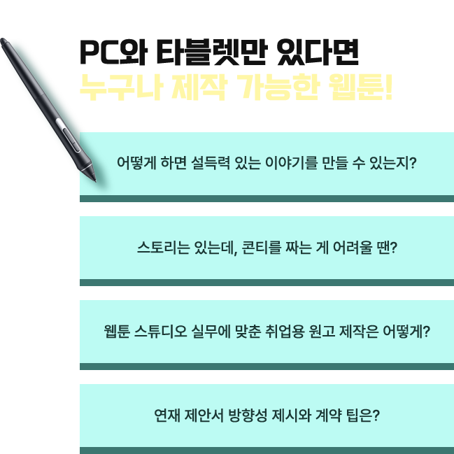 웹툰 제작시 필요한 연출과 작화 과정을 배우게 됩니다!